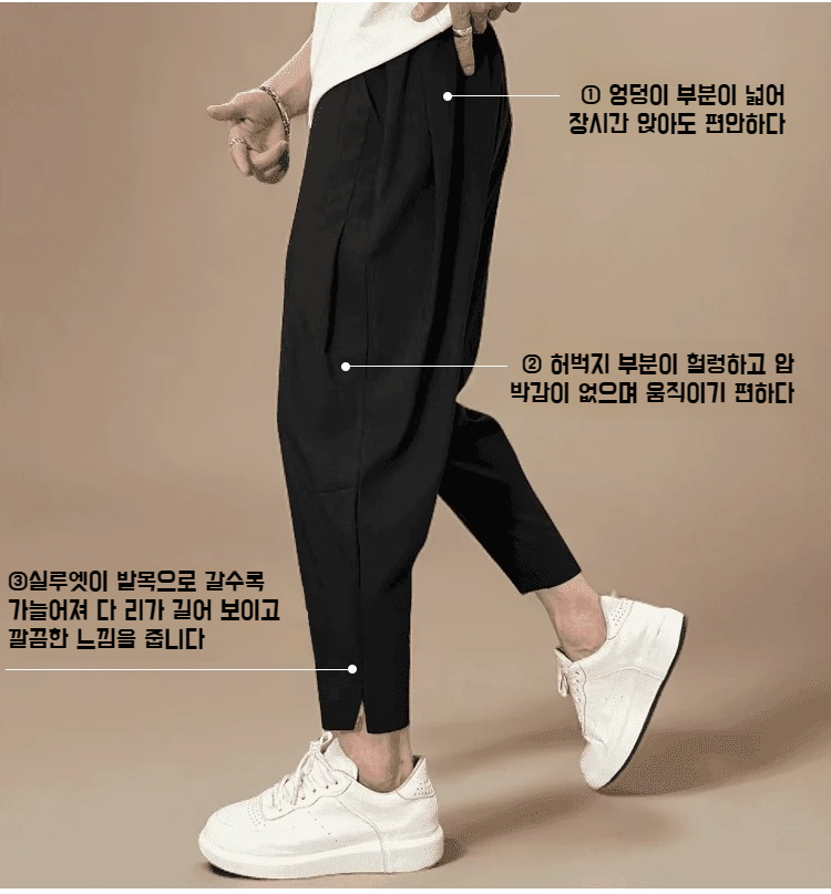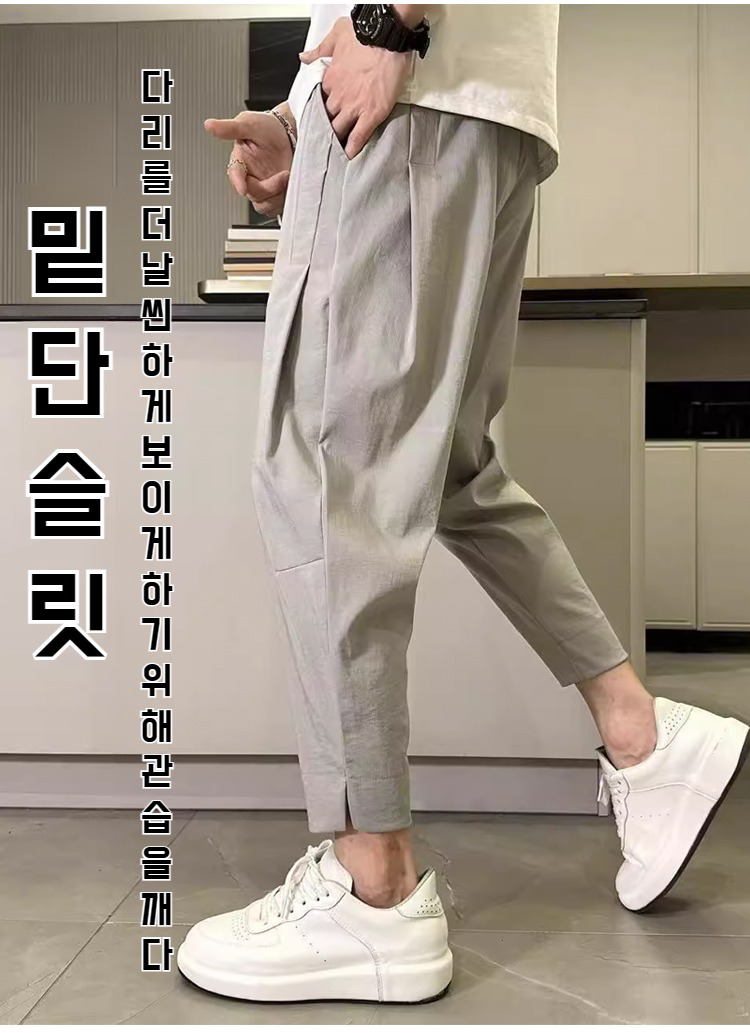 트임 디테일이 돋보이는 남자 9부 바지