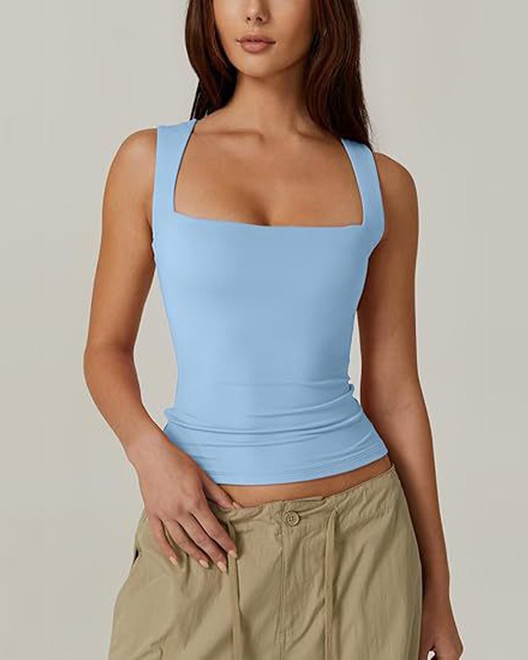 여름 여성 타이트 이중 나시 베이직 민소매 티셔츠 여름 여성 스퀘어넥 나시